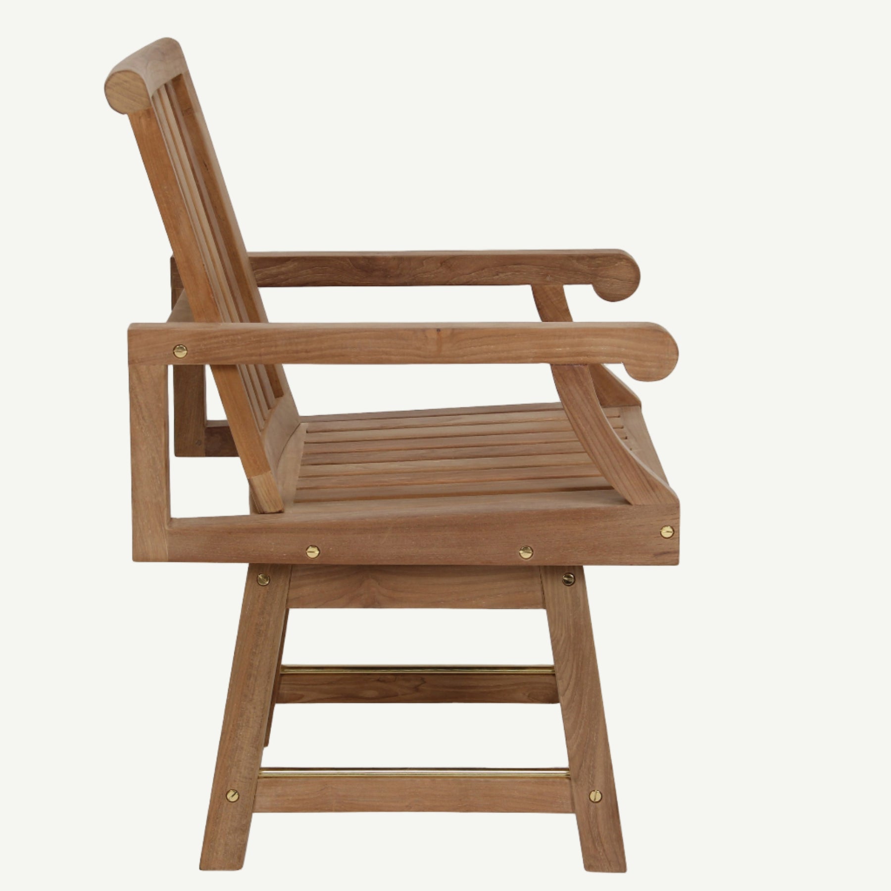 Enhance your dining experience with the Kings Swivel Dining Arm Chair in recycled teak. Crafted for durability and style, this chair offers smooth 360-degree swivel functionality for effortless movement and convenience during meals.