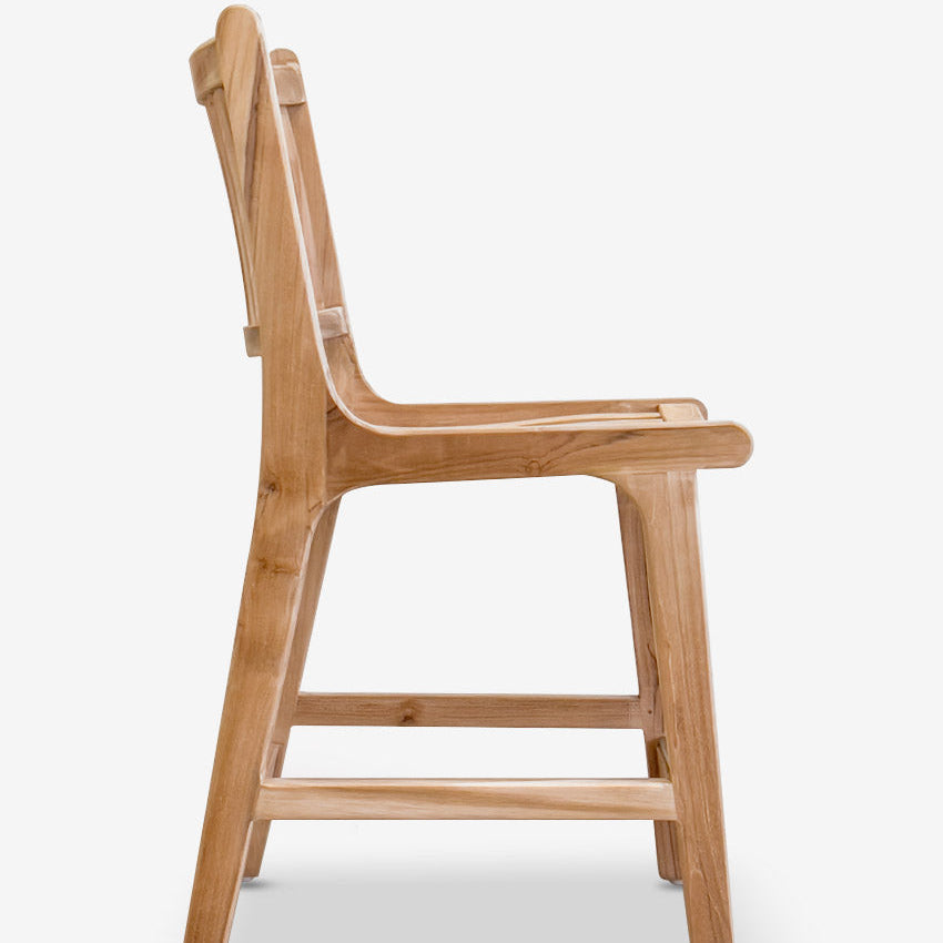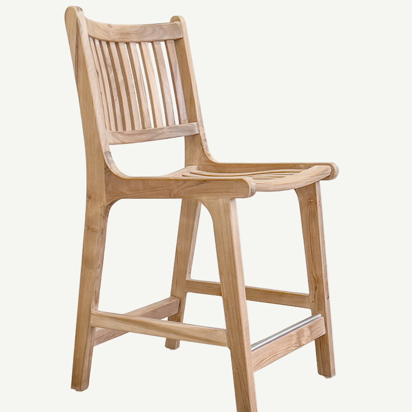 The Copenhagen Counter Bar Side Chair combines sleek teak wood craftsmanship with a minimalist design, offering durable comfort and timeless style ideal for any counter-height seating area. Height to seat base 61cm. Full height 103cm.