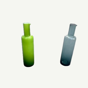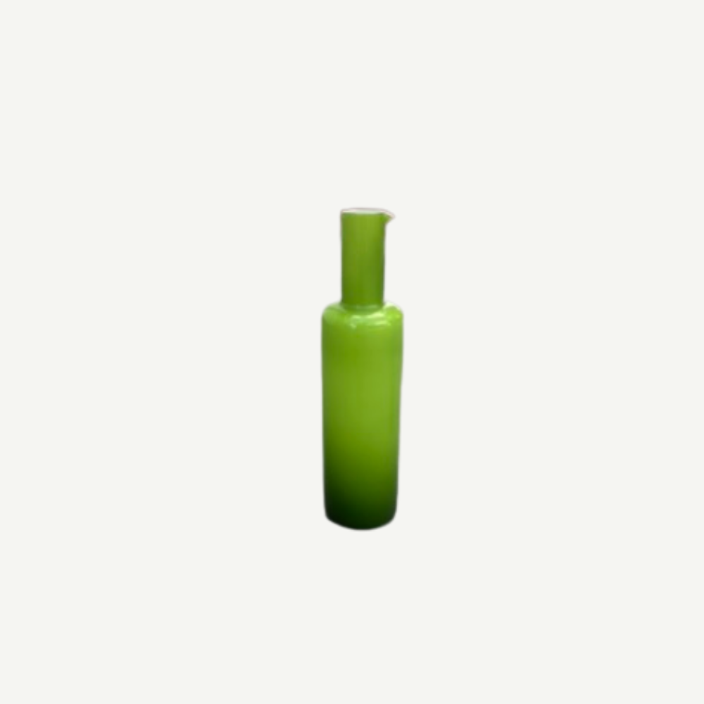 Milky green glass flask bottle, 30 cm tall. This design lets you display contents while adding modern style to any room.