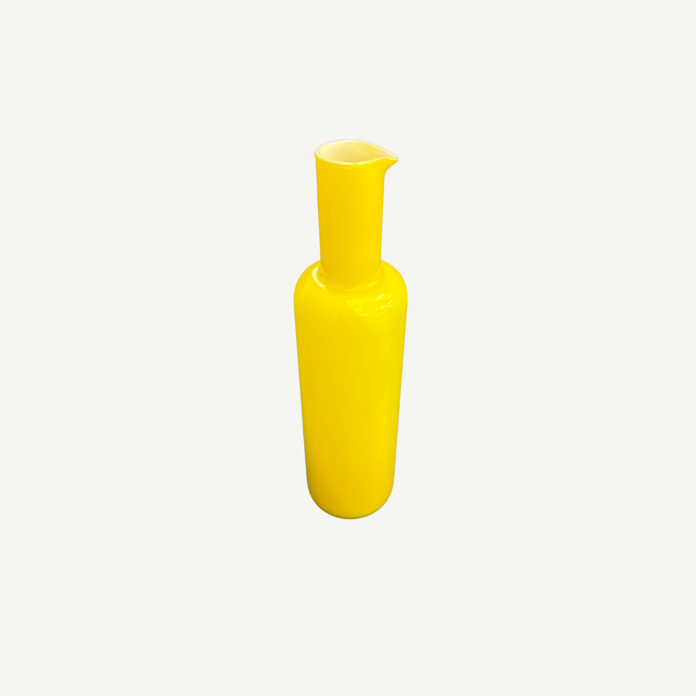 Milky yellow glass flask bottle, 30 cm tall. This design lets you display contents while adding modern style to any room.
