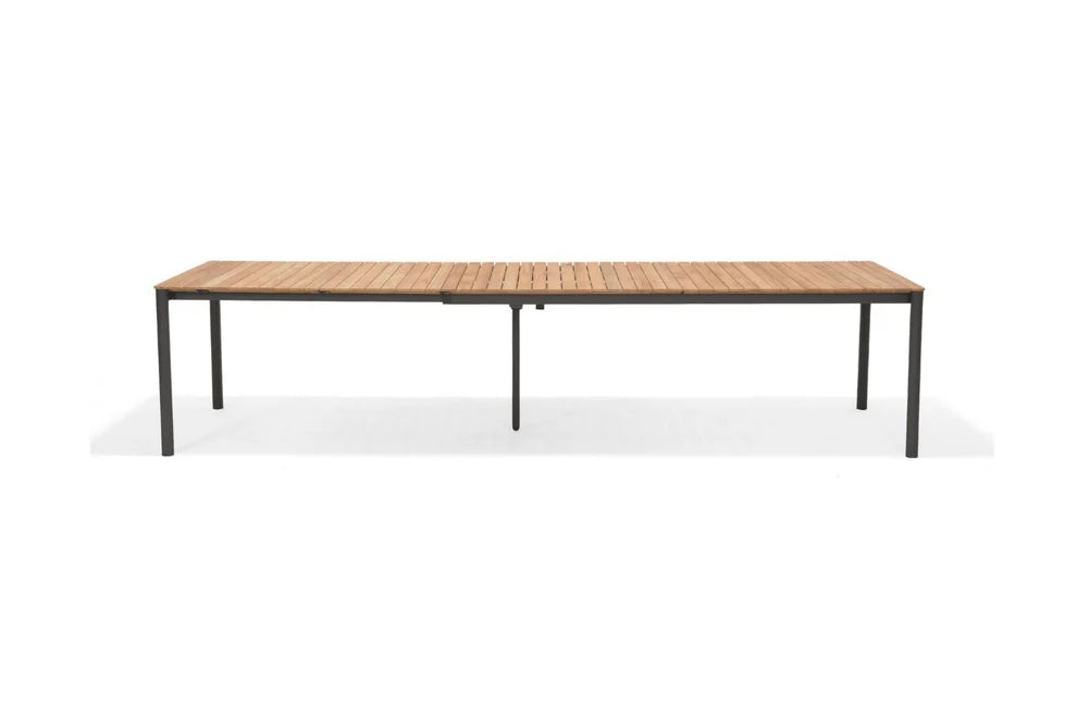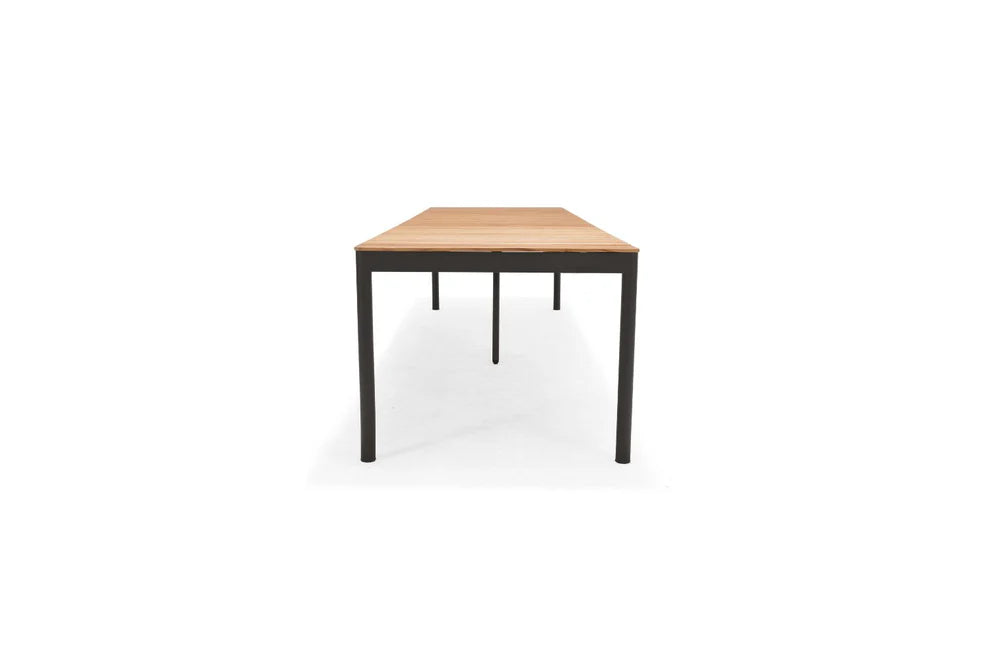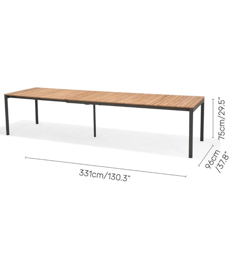 Topaz Rectangular Extendable Black Aluminum & 100% FSC Teak Wood Dining Table