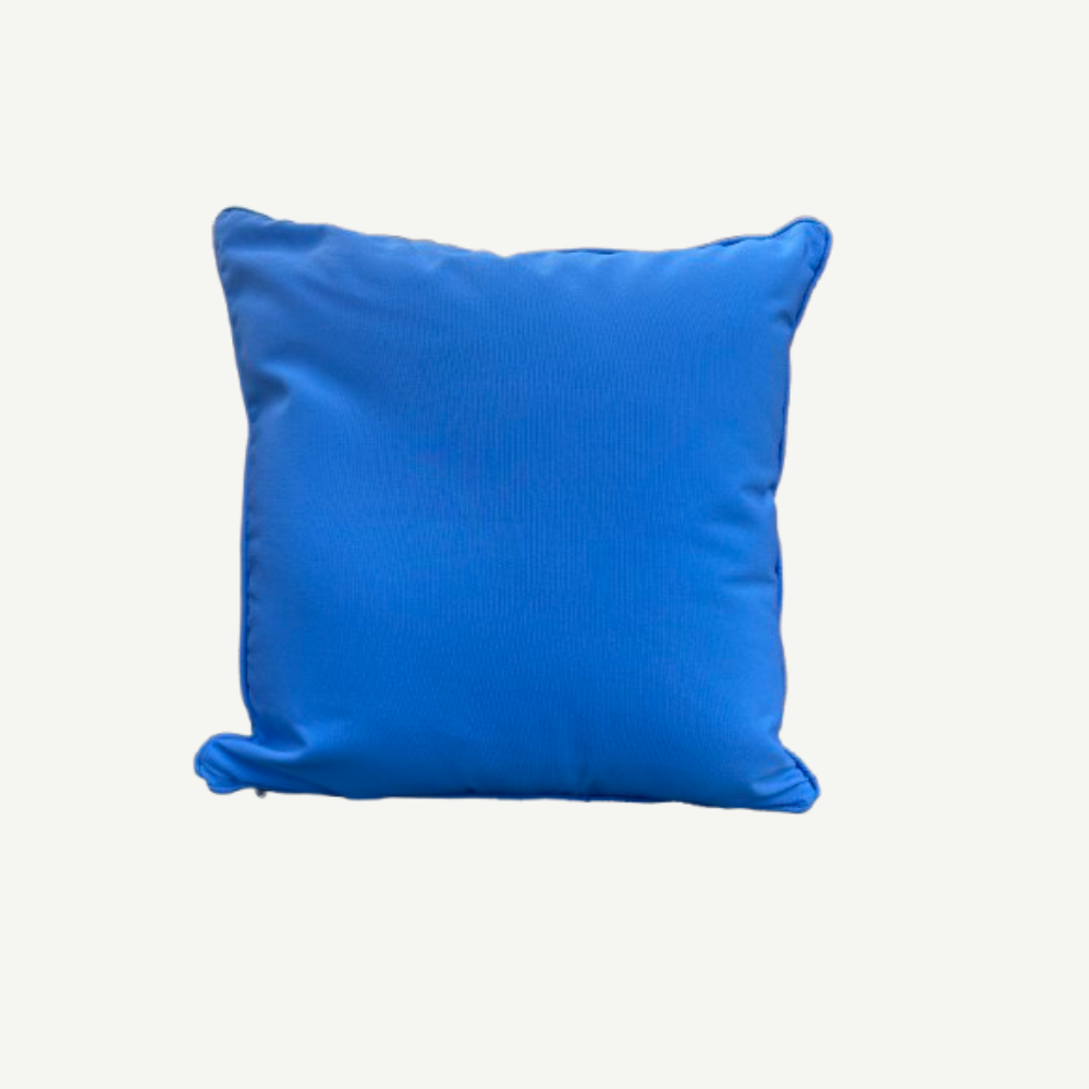 A 20-inch cushion in Mediterranean-inspired Sunbrella Canvas Capri with piping. Weather-resistant and perfect for sofas, lounges, or outdoor seating.