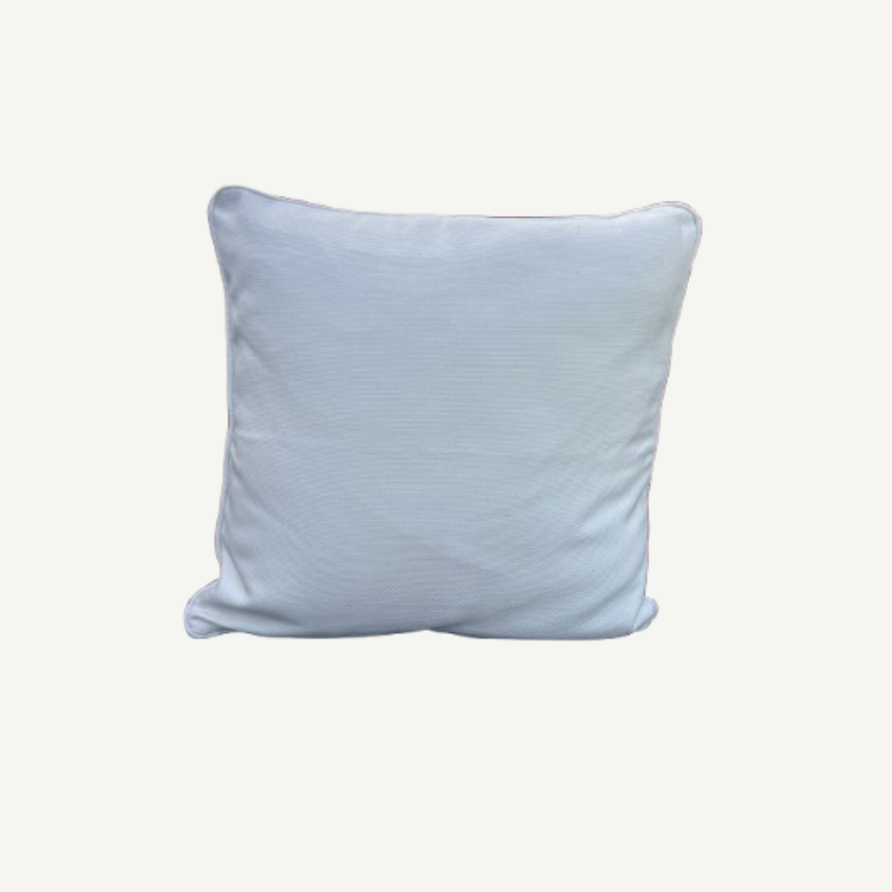 A 20-inch cushion in durable Sunbrella Sailcloth Salt with piped detailing. Weather-resistant design works indoors or on covered outdoor spaces.