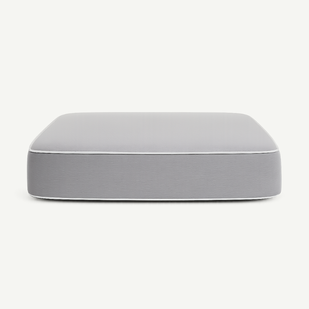 Oslo Ottoman Cushion in 70 x 70 cm dimensions, crafted from weather-resistant Sunbrella Canvas Granite with white piping.