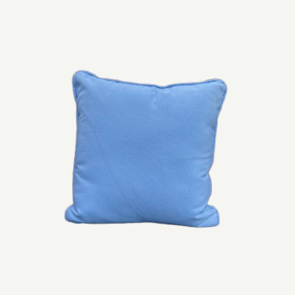 A 16-inch throw cushion in soft Sunbrella Canvas Air Blue with piped edges. Calming colour and refined finish work beautifully across any décor style.