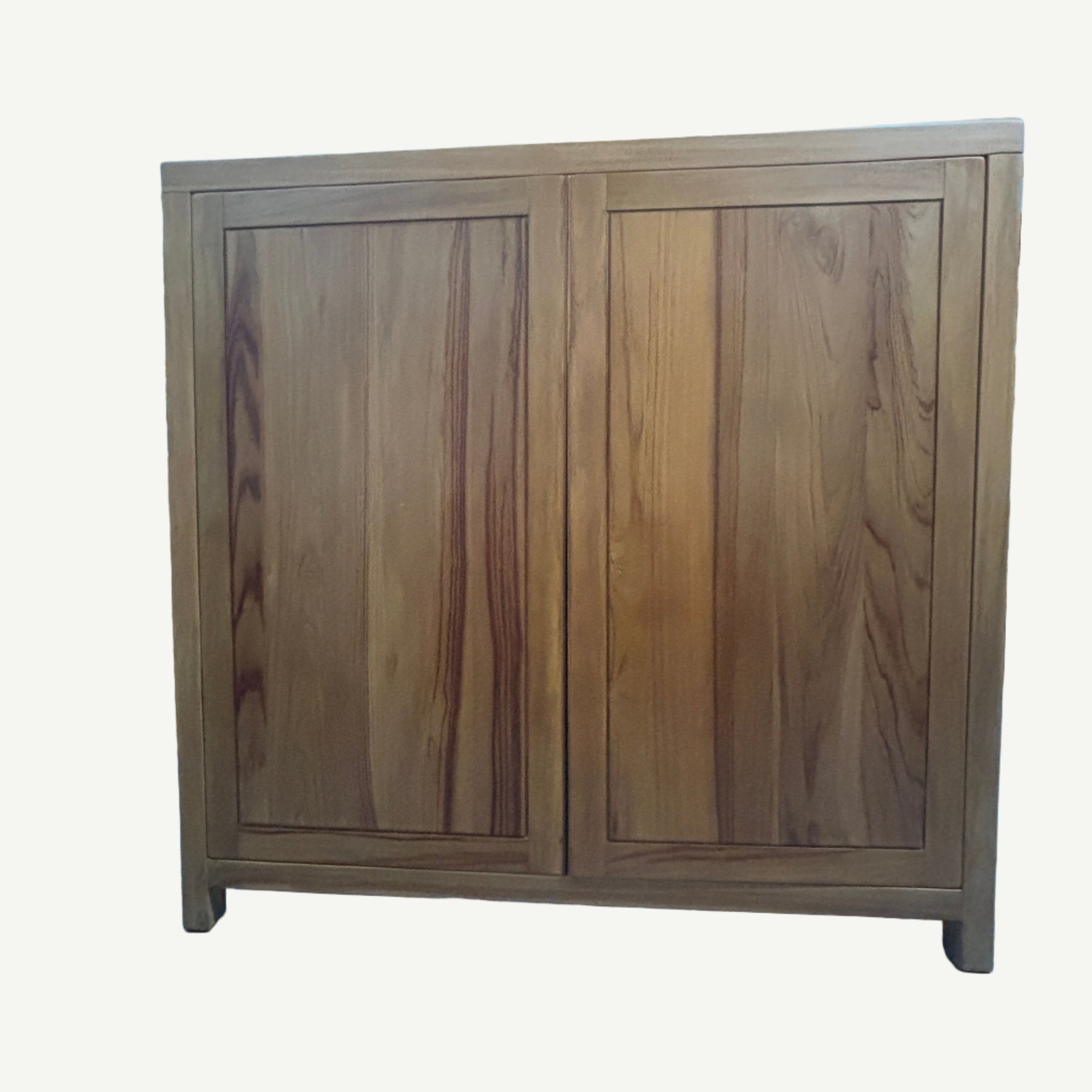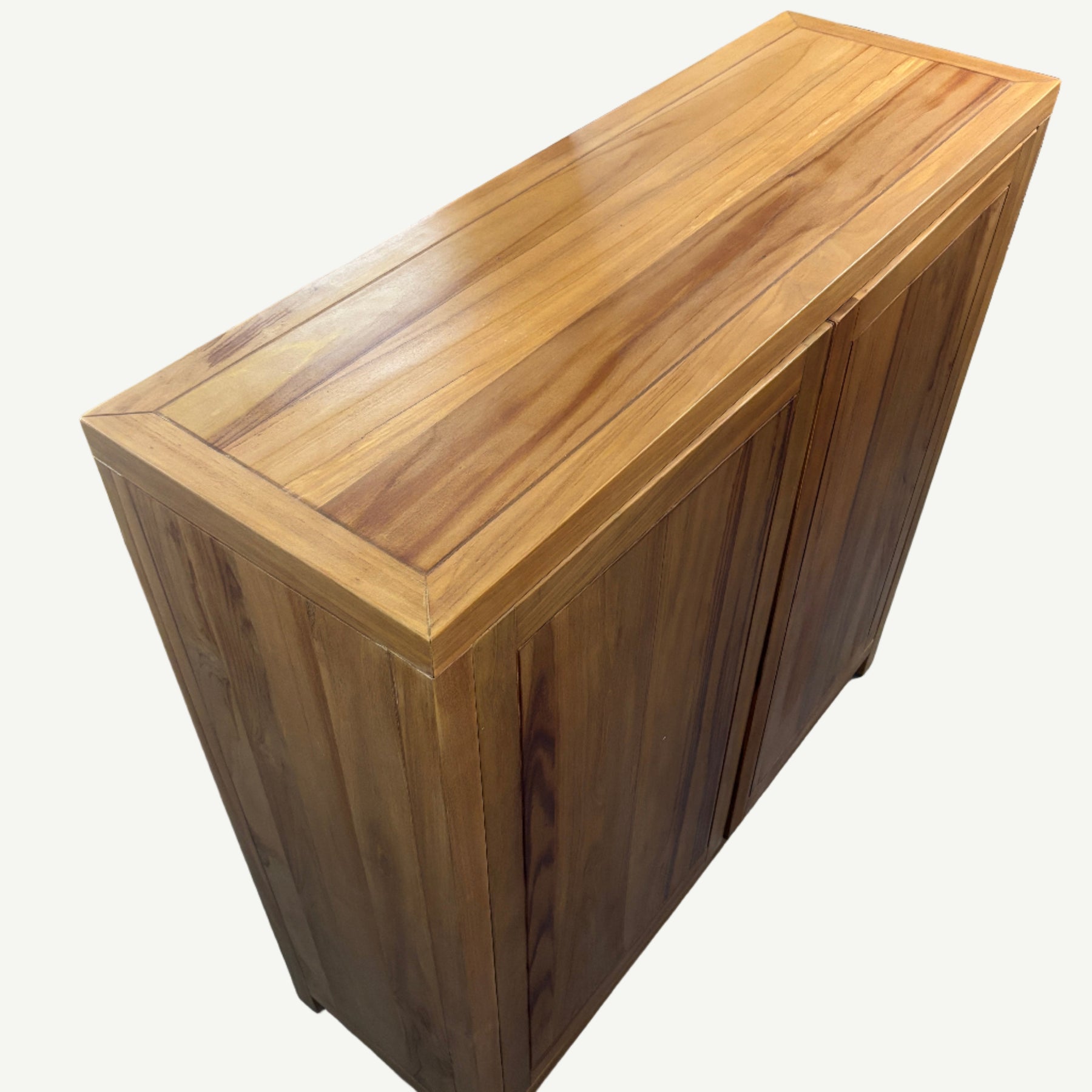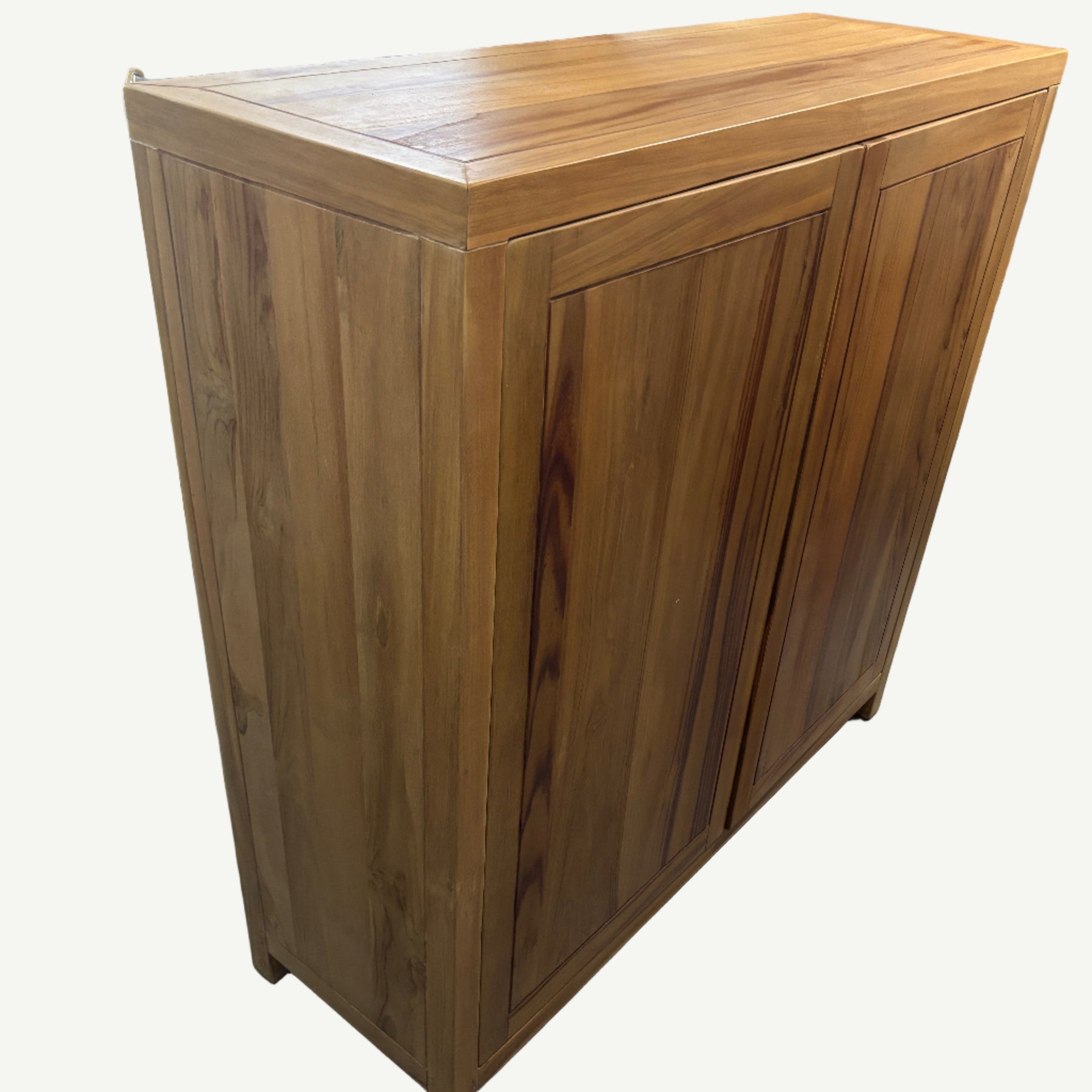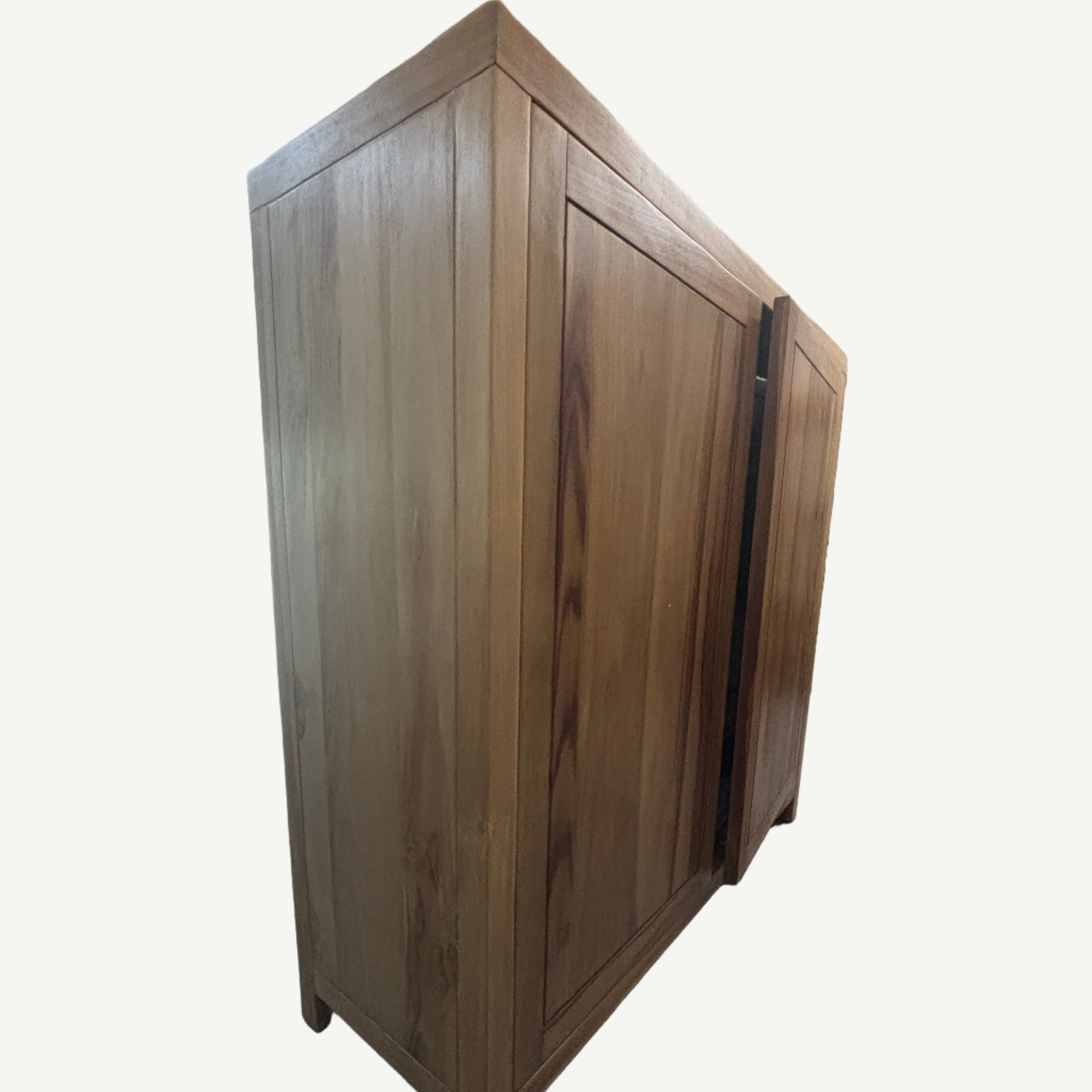 The Mexico Cabinet features two doors with a natural finish, measuring 45x134x30 cm. This piece it ideal for organizing essentials while adding a warm, rustic touch to your space.