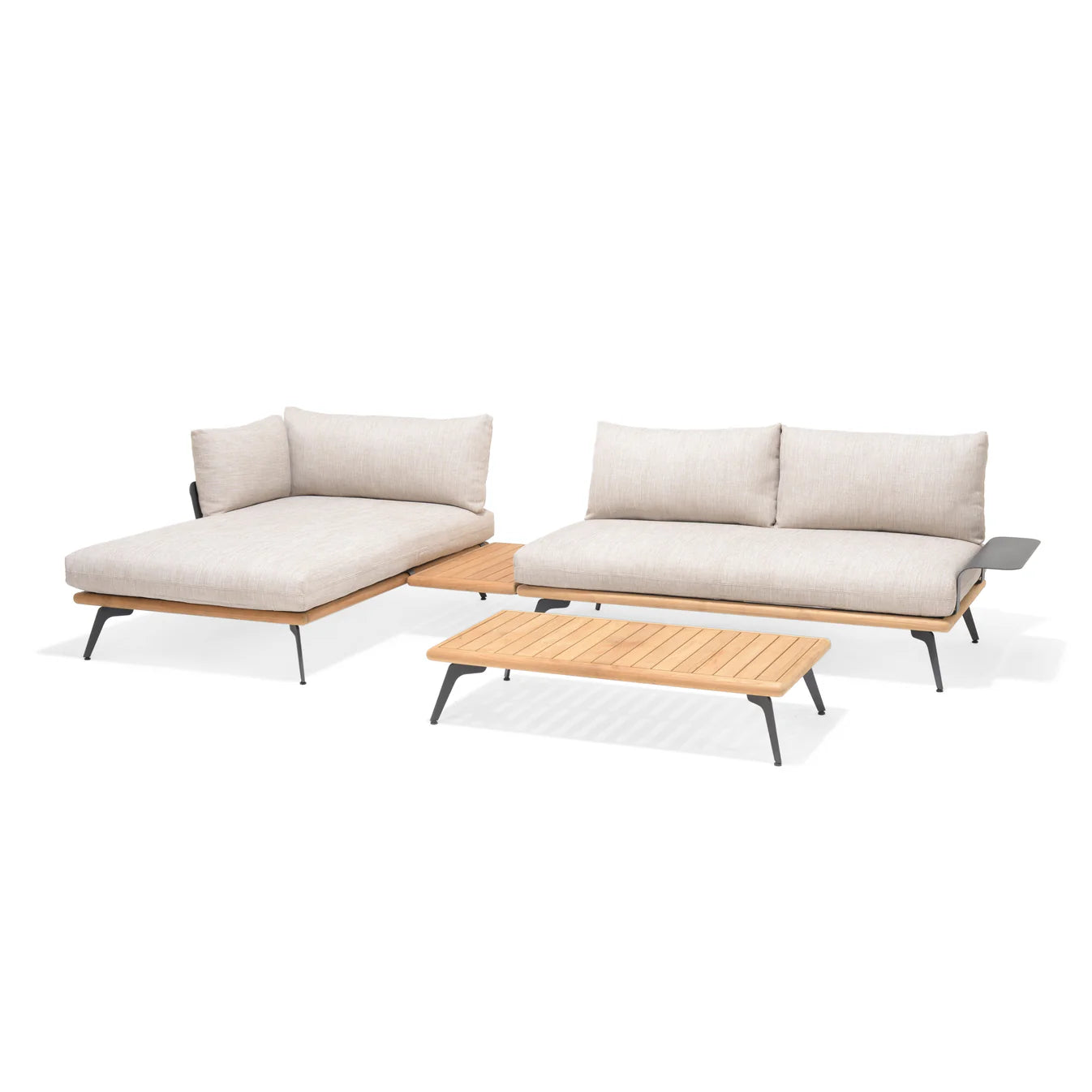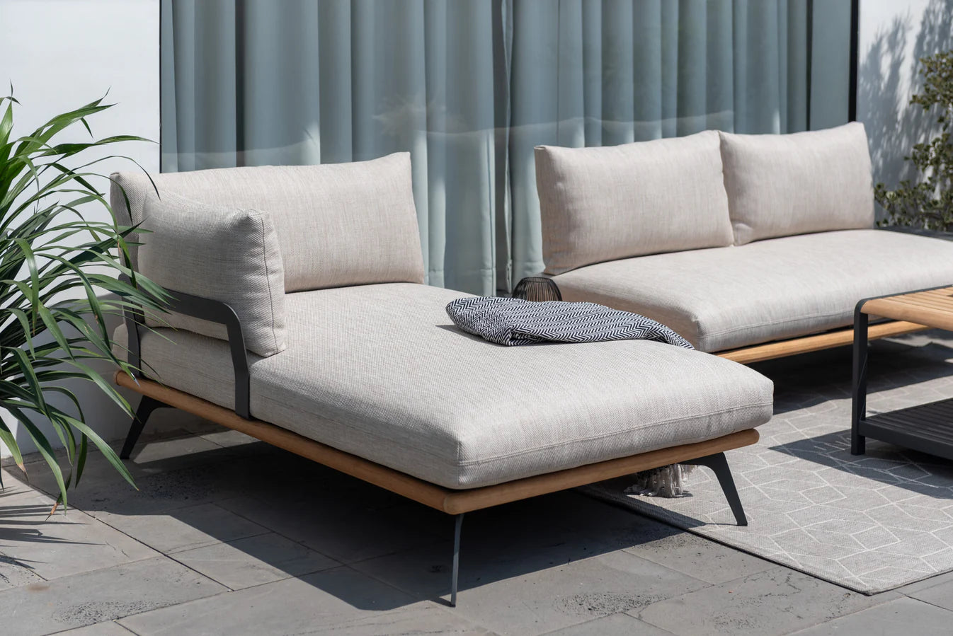 Crafted with meticulous attention to detail and using the finest materials, the Pearl seamlessly blends comfort, style, and functionality. Each piece is meticulously designed with FSC ™-certified teak, ensuring durability, while the sleek aluminum frames, with their elegantly curved arms, add a touch of modern sophistication. Additionally, the Pearl features cushions made from premium Sunbrella ® fabric, enhancing both luxury and resilience. Warm and inviting, the Pearl sofa set warmly welcomes you to relax and unwind. It’s exceptional design makes it the perfect addition to your outdoor sanctuary, where comfort meets elegance effortlessly.