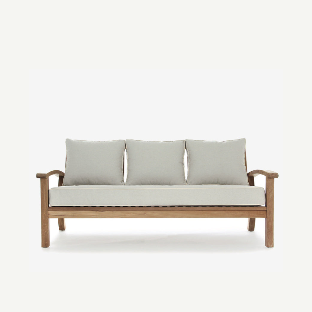 The Manhattan 3 Seater Sofa, crafted from durable teak, measures 190 x 90 x 86cm. Its sturdy design offers lasting comfort and style, perfect for any indoor and outdoor space.