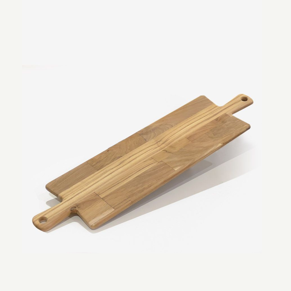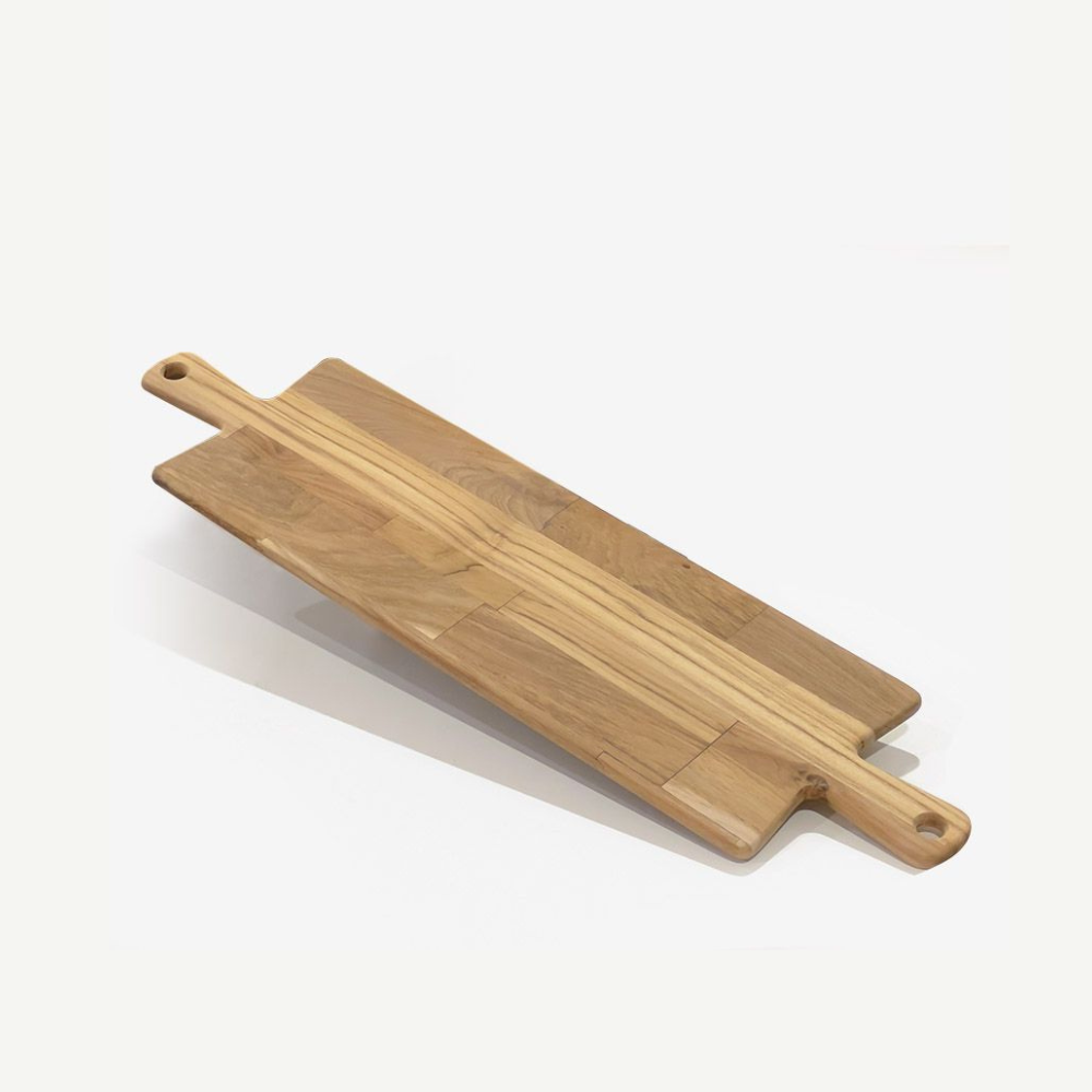 Handcrafted from sustainable teak with dual handles for easy serving. Naturally moisture-resistant and develops rich character over time—ideal for entertaining.